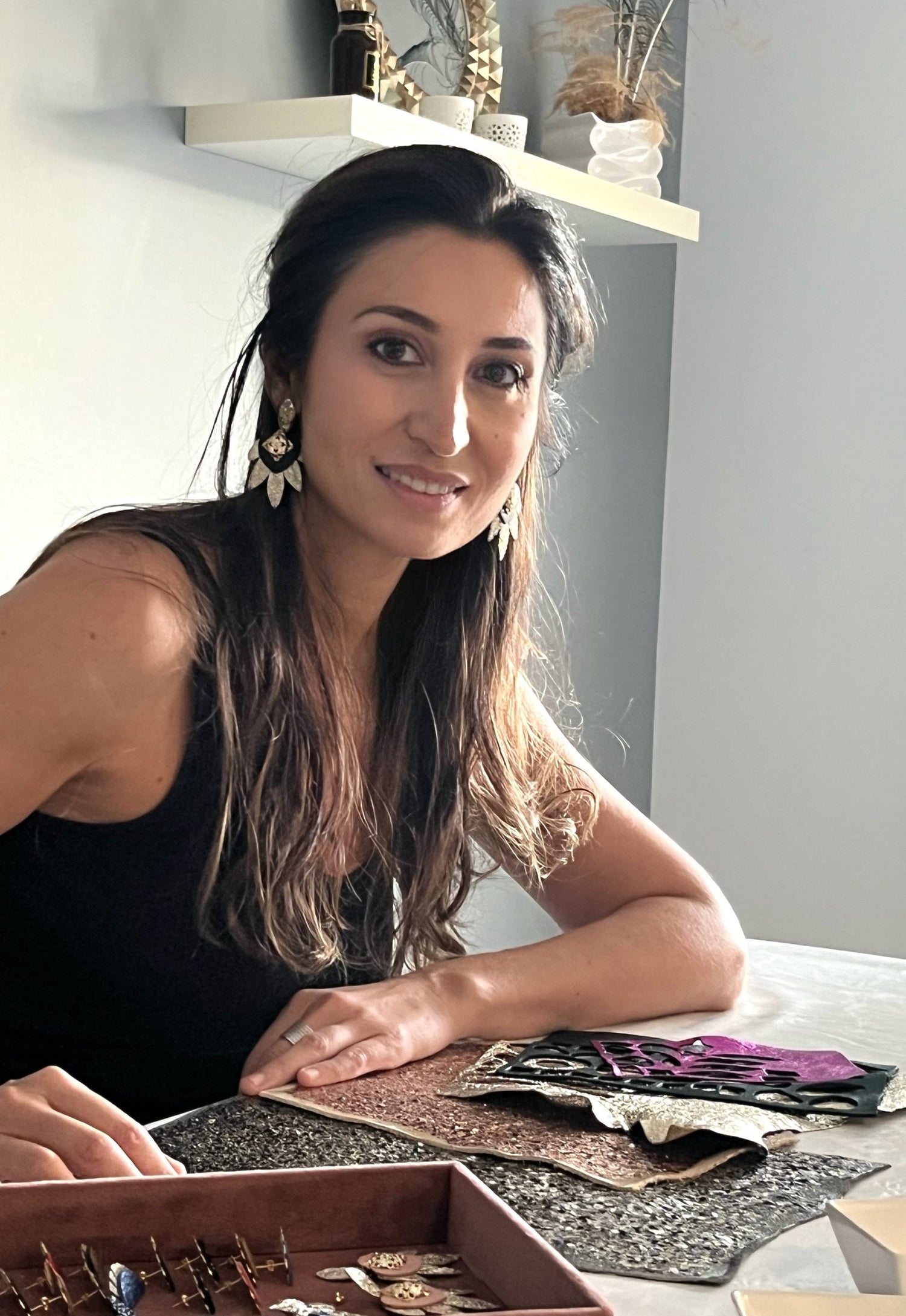 Je déniche dans de grandes maisons de maroquinerie des cuirs déclassés, des fins de série, qui n'ont plus aucun intérêt pour les maroquiniers. Ainsi, toutes mes créations sont réalisées dans une démarche totalement éco-responsable. Recycler les matières pour leur offrir une seconde vie est au cœur de ma vision, donnant naissance à des bijoux durables, pensés pour générer zéro déchet.
