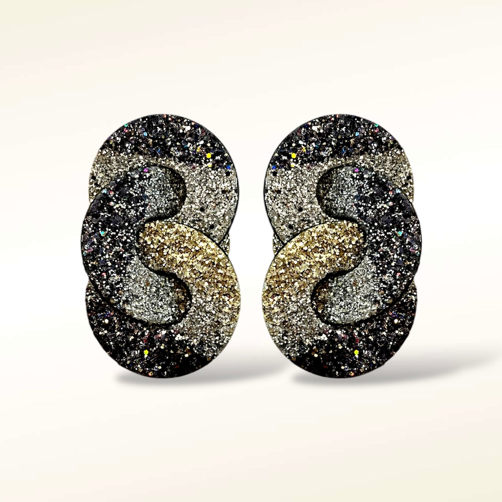 Description: Les boucles d'oreilles Swann séduisent par leurs courbes entrelacées et leur éclat pailleté. Légères et confortables malgré leur format généreux, elles illuminent chaque tenue avec audace et originalité.